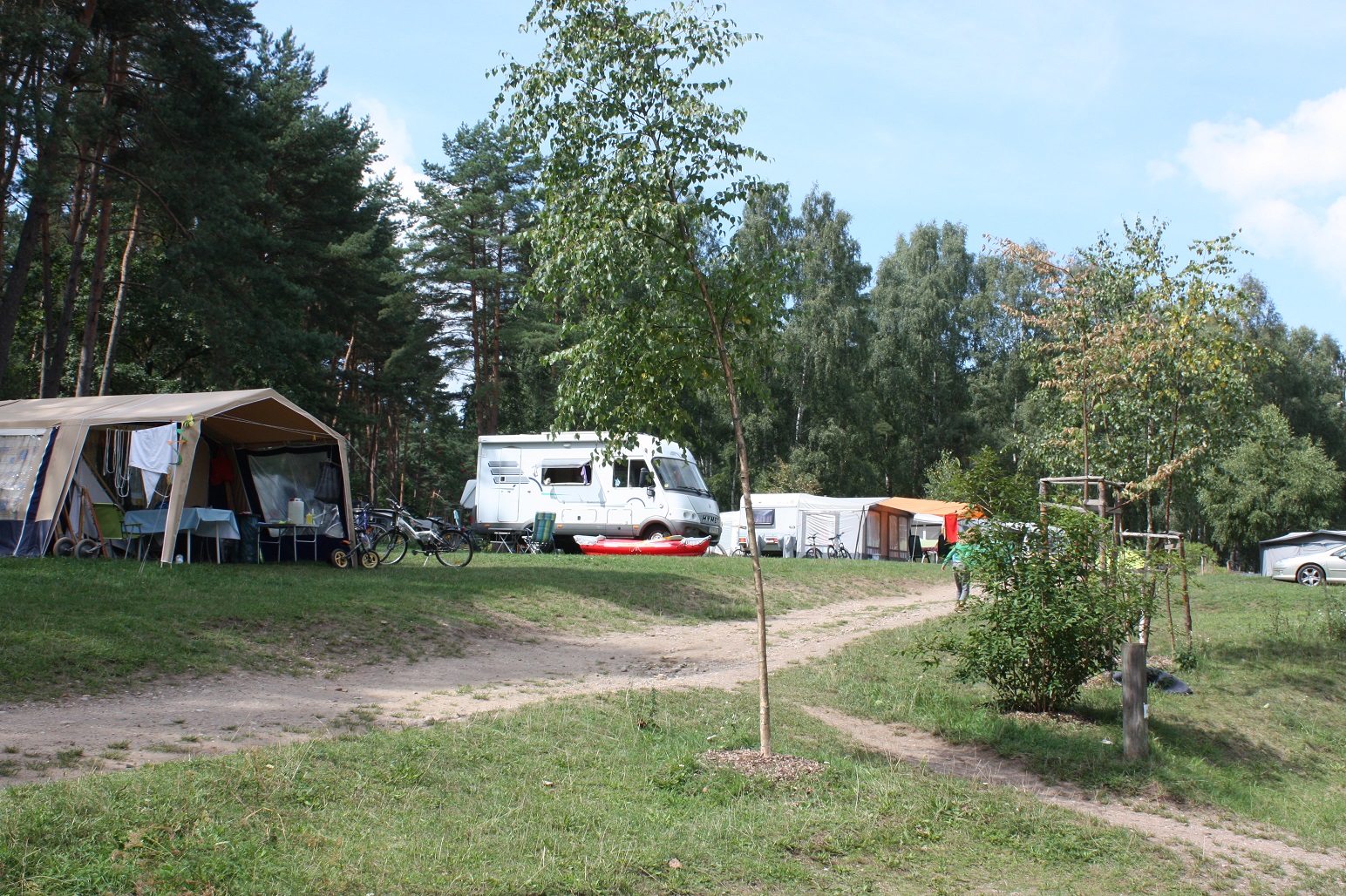 Der Campingplatz am Dreetzsee hat vom 01.04 bis 31.10. geöffnet. Der Platz umfasst eine Fläche von 10,5 ha und verfügt über 150 Touristen- und 150 Dauerstellplätze. Der idyllische Platz besitzt überwiegend Stellplätze, die naturbelassen und mit hohen Kiefern und Birken bewachsen sind. Campingfreunde haben die Wahl zwischen sonnigen und halbschattigen Plätzen. Die einzigartige Lage am Dreetzsee ermöglicht es direkt einen Stellplatz am Ufer zu mieten und einen atemberaubenden Ausblick über den See zu genießen. Alle Stellplätze verfügen über einen Stromanschluss mit CEE-Steckdosen (16 Ampère). Die sanitären Einrichtungen auf dem Campingplatz Dreetzsee ist modern, komfortable und barrierefrei.
